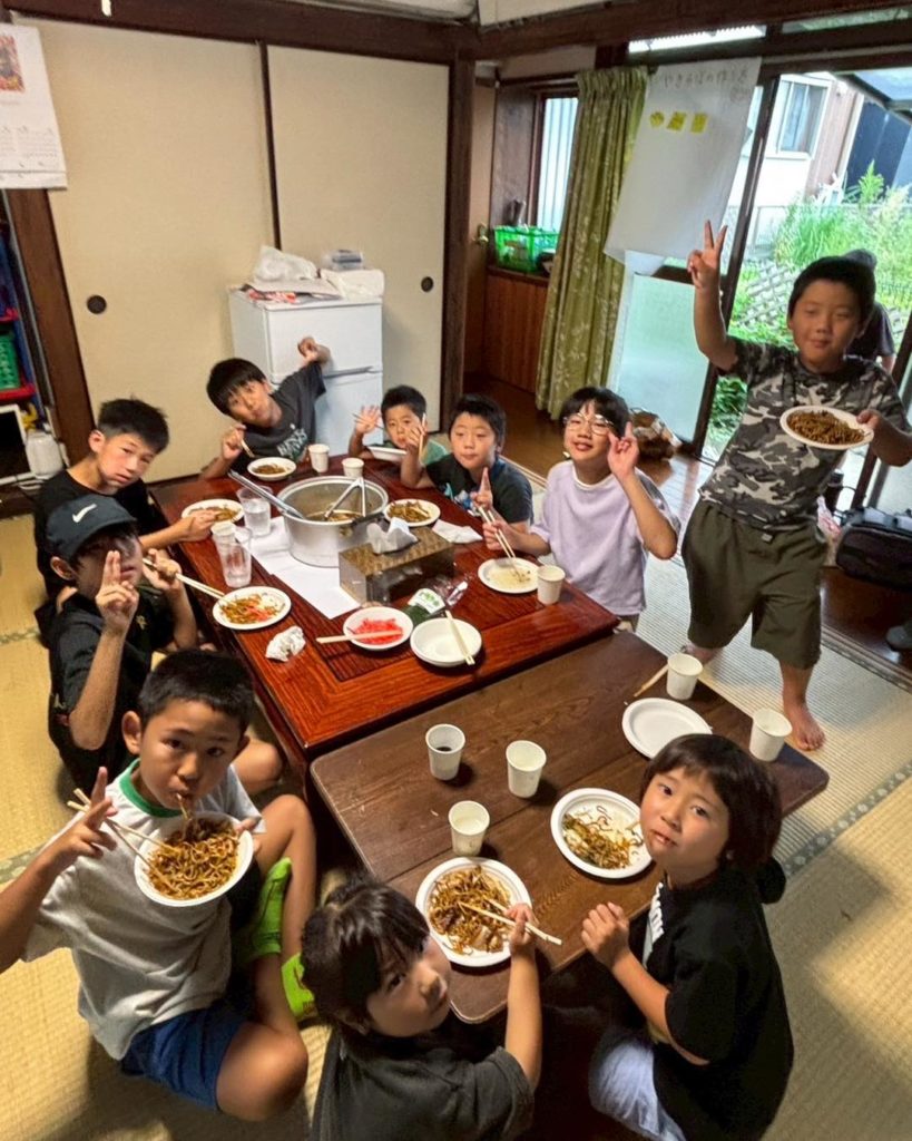 自分たちで作った焼きそばをみんなで食べると、一段とおいしいね![]()