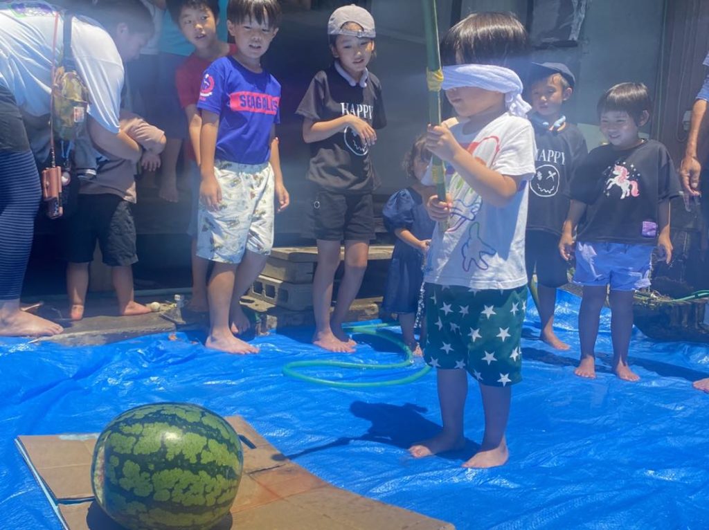 今回は、かき氷、ヨーヨー釣り、スイカ割りと、小さな縁日テイストで開催してみました。